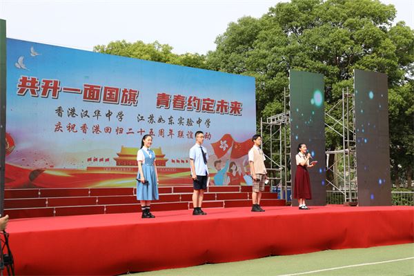 “你畅游在南国的美丽香江,我享尽南黄海的旖旎风光。你镶嵌于闪烁的东方之珠,我融入了雄伟的东方大港……”6月27日,香港汉华中学和江苏如东实验中学联袂举行“共升一面国旗 青春约定未来”主题活动。如东实验中学学生会主席陈瑶在活动上朗诵。