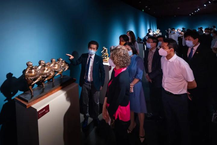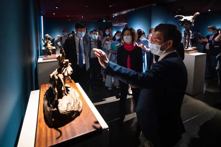 7月3日下午,由国家大剧院、中国国家画院、广东省人民政府文史研究馆、中共广州市委宣传部、广东省文学艺术界联合会、广州市文化广电旅游局联合主办的“踏歌而来——许鸿飞雕塑作品展”在国家大剧院西展览厅举办开幕专场活动。国家大剧院院长王宁、中国国家画院院长卢禹舜、广州雕塑院院长许鸿飞以及来自相关艺术机构的嘉宾、艺术家出席。