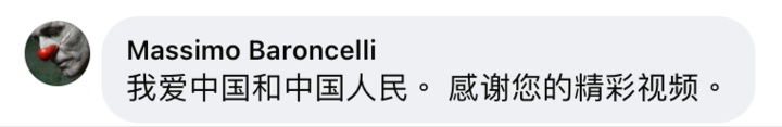 △意大利网友马西莫·巴隆切利甚至用中文“表白”中国和中国人民,感谢您的精彩视频