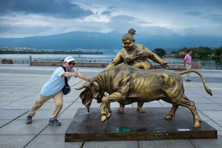 有市民表示,今天特地约了一众姐妹,来欣赏艺术……还有观众表示,虽然下着小雨,但还是有很多人和“肥女”拍照合影,她们也不例外。有了“肥女”,广场也变得欢快、活跃起来,展览丰富了市民的精神生活。