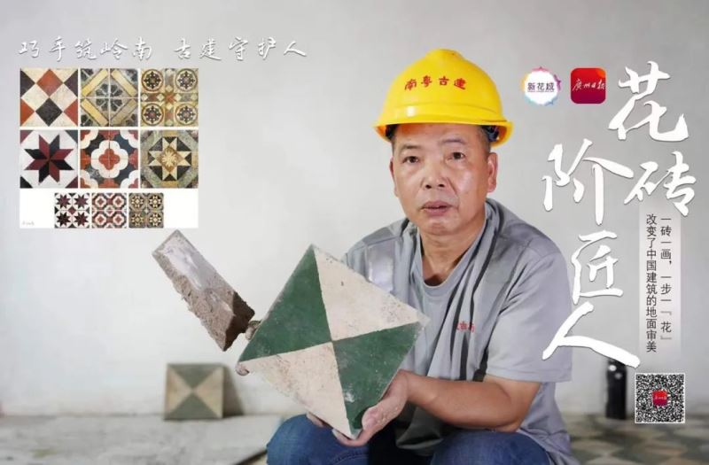 铺砖匠吴文进拥有近40年从业经验,每回修缮老屋铺花阶砖,吴文进都会格外小心,因为“铺一块少一块。”踏着美丽的花砖,岭南建筑百年变迁史就在“足下生花”中娓娓道来。