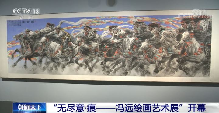 清华大学艺术博物馆常务副馆长 杜鹏飞:因为这件作品尺幅非常巨大,为了画这件作品,他(冯远)是把作品卷起来,画一段展一段,那么在过程中想看全貌怎么办?冯老师抬着这件作品到地下室车库把它完全铺开,才能看一下它的整体。冯远作为一位艺术家,我觉得(他)具有非常强烈的自觉性,是作品本身,他追求的那种宏大之美、崇高之美的自觉性。