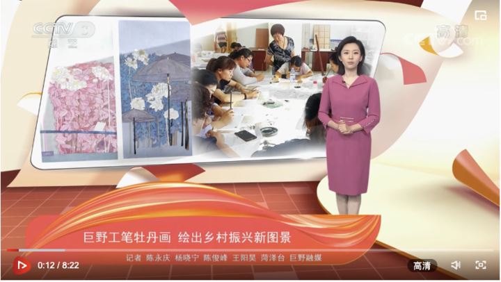 山东省巨野县书画院业务副院长 侯福常:所有的朋友圈都在转载,大家都非常的兴奋。然后第二天所碰到的每一个人都说你们巨野工笔牡丹画出名了,习总书记在你们画前合影了。
