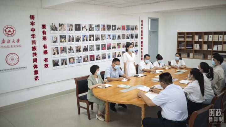 △新疆大学,铸牢中华民族共同体意识研究基地的讨论现场。(总台央视记者王哈男拍摄)