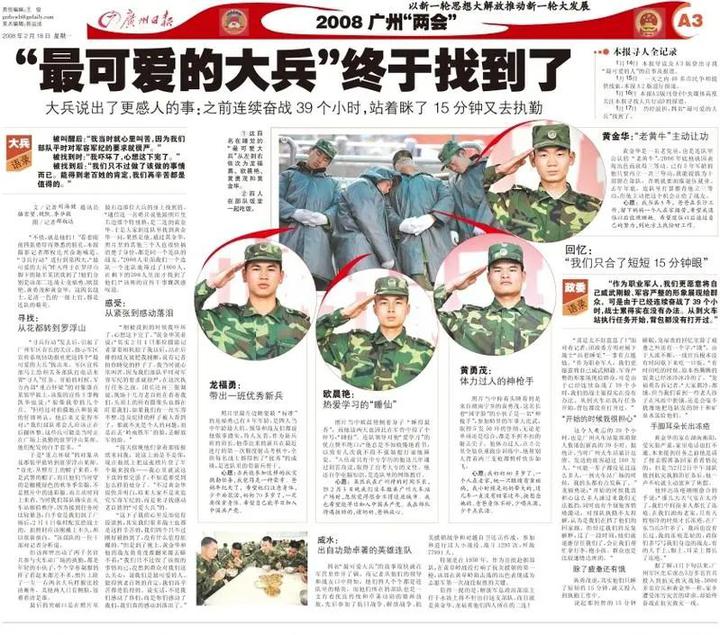 2008年2月18日,“最可爱的大兵”找到后,《广州日报》刊登了相关报道。