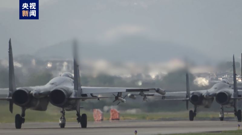 今天上午,东部战区空军出动预警机、歼击机、轰炸机等多型先进战机,从多机场战斗起飞、到多空域执行任务,开展预警指挥、干扰压制、兵力进压等。东部战区海军在台岛周边海域开展联合封控和联合对陆对海打击等多课目针对性演练。