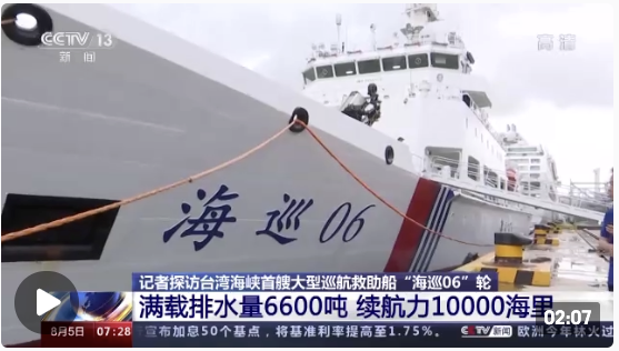 8月4日至5日,台湾海峡首艘大型巡航救助船开展本巡航周期最后阶段的巡航行动——厦门新机场建设项目和泉州至金门供水管线,由于巡航时间较长,记者有机会近距离观察“海巡06”,一起去看看首次巡航执法的“海巡06”到底是什么样的?
