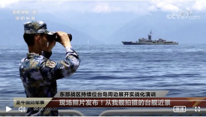 能够清楚看到距离解放军舰艇不远处