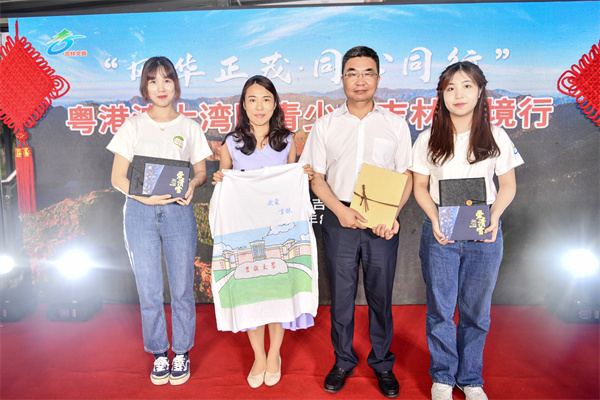 吉林省文化和旅游厅国际与港澳台事务处处长宋咏、副处长范敏与粤港澳大湾区青少年互赠礼品。梁琪佳摄