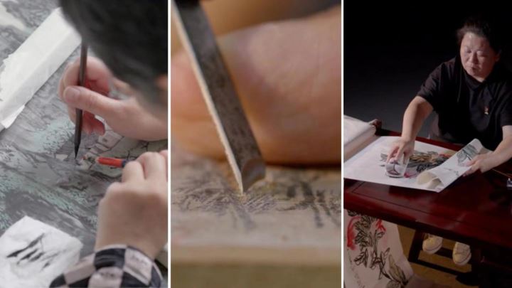 印刷者不仅要手法熟练、干脆利落,还要熟知绘画技法,才能应对作品中微妙的细节及干湿浓淡的变化。