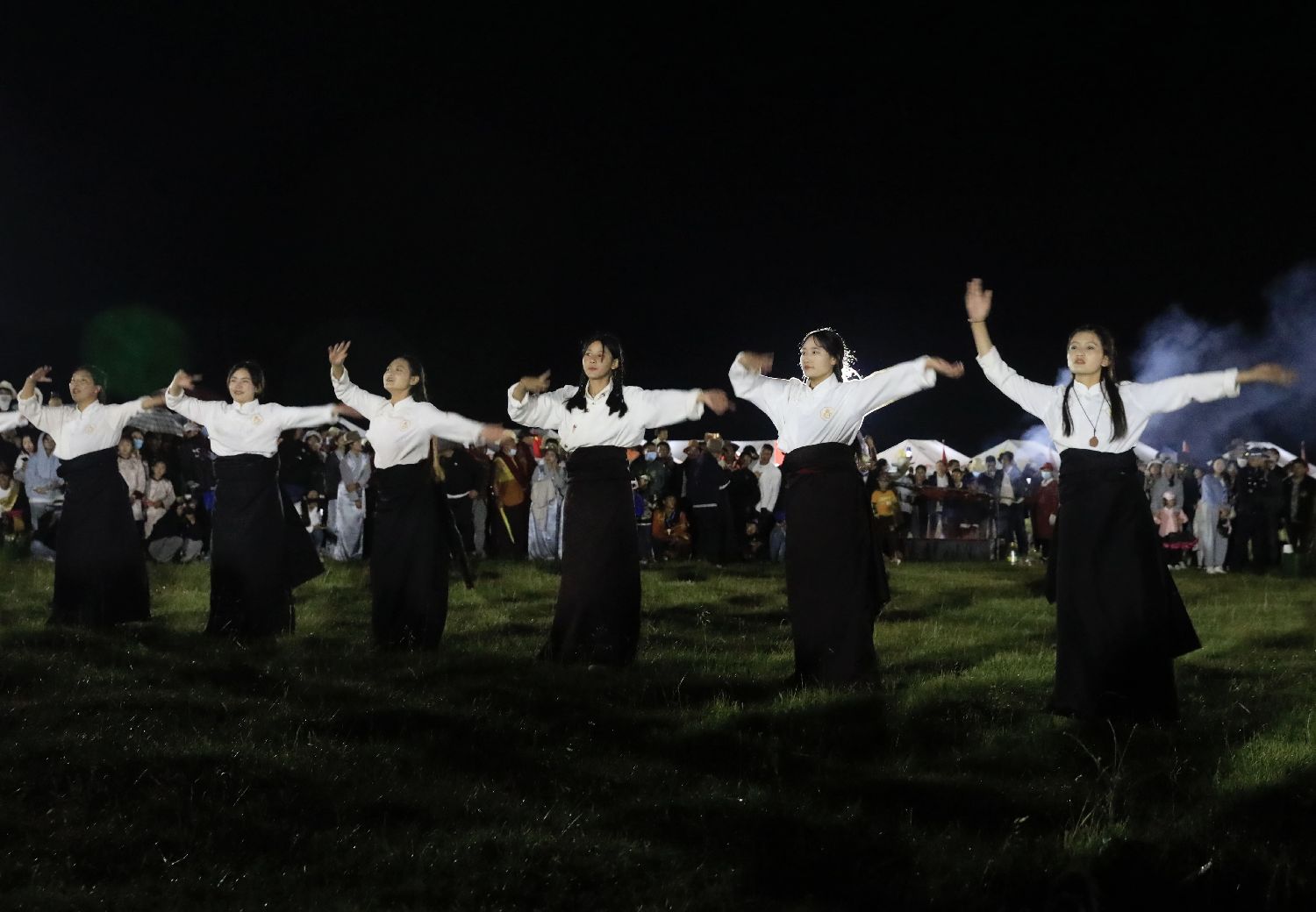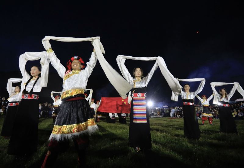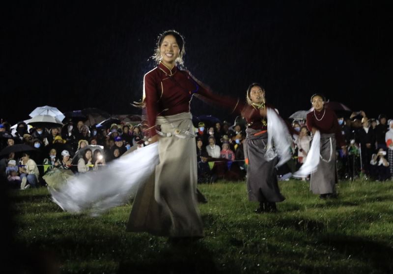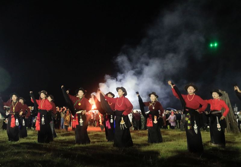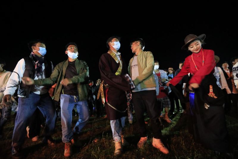 游客扎斯甲说:“平时很喜欢亲近大自然。今天赶上这个篝火晚会,和大家又唱又跳,觉得自己跟个孩子一样,欢快的锅庄让人根本不想停下来。”伴随着欢快的节拍,现场气氛不断升华,大家手牵着手,肩并着肩,围着篝火欢呼劲舞。晚会在大家齐跳锅庄舞蹈中圆满结束。