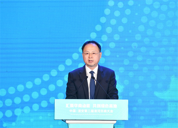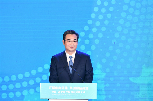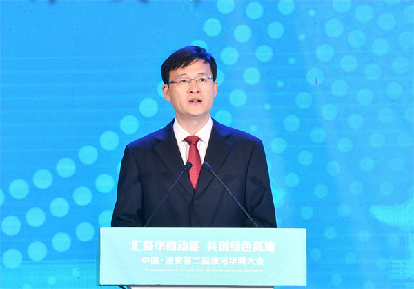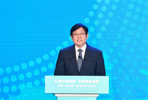 王华说,去年,在国务院侨办以及各有关方面的关心支持下,特别是在淮安市委市政府的创新作为下,首届淮河华商大会取得了丰硕成果,成立了淮河生态经济带侨务工作联盟,为汇聚侨智侨力、提升侨务工作水平搭建了平台,得到了各级领导的充分肯定。今天,省委统战部、江苏发展大会秘书处和淮安市委、市政府共同主办中国·淮安第二届淮河华商大会,立足淮河,面向全球,续写“淮河华商大会”崭新篇章,既是响应淮河生态经济带国家战略具体举措,也是回应沿淮流域携手发展的共同期盼,是致力打造区域合作、对外开放新平台,推动区域经济融合发展、协调发展的实际行动。作为“淮河华商大会”这一新平台的发起者,淮安充分彰显坚定不移推动全方位高水平对外开放的决心和姿态,努力在全球范围内集聚华商资源,密切中外经贸和文化交流合作,积极创造更好的营商环境,致力打造出全方位高水平对外开放的“江苏样本”。淮河流域地缘相近、文化相亲、产业互补,首届淮河华商大会的举办,进一步突破了5省28地市行政区域限制,整合了区域内资源,拓展了合作空间,深化了合作领域。在第二届大会“汇聚华商动能 共创绿色高地”的美好愿景下,我们要共同打造好“淮河华商大会”这一品牌,把江苏发展大会的资源优势与统一战线资源优势有机融合,以淮河华商大会为示范引领,突出常态长效,完善合作机制,促进资源整合,以更大的开放格局分享发展机遇、以更深的合作推进互利共赢。