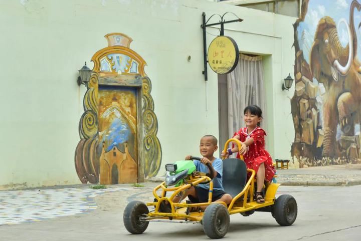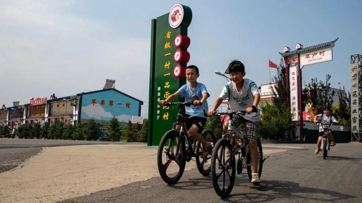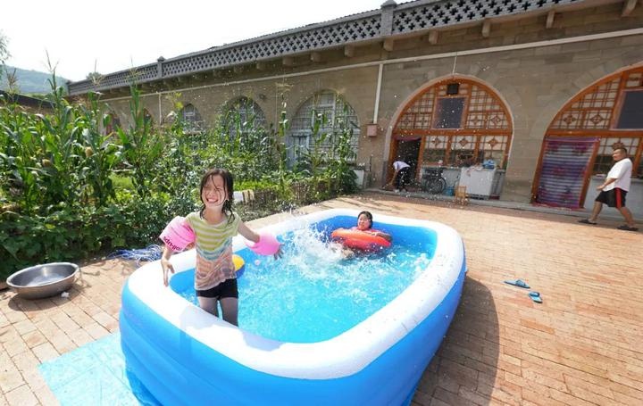 2022年8月15日,铜川市耀州区石柱镇马咀村欧洲风情小镇的孩子。马咀村群众通过努力奋斗完成了从“烂杆村”到“水泥村”到“生态村”再到“旅游村”的四级转变。王守钢 摄