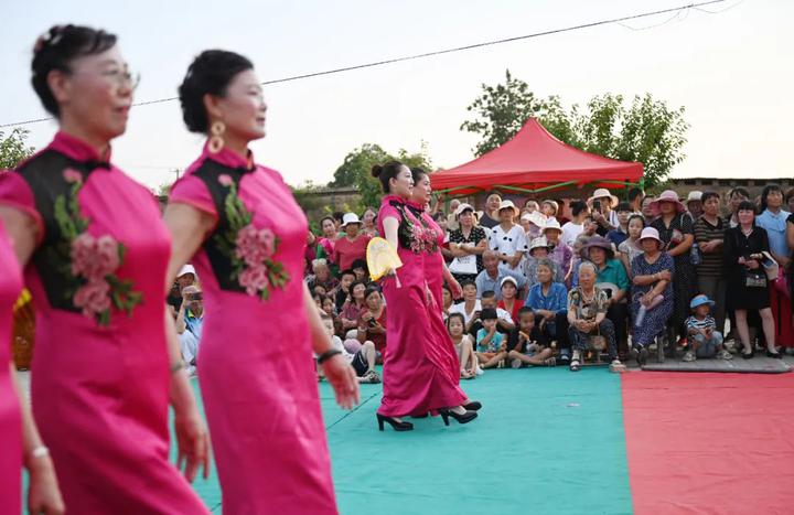 2022年8月11日,群众演员在陕西省洛川县老年大学土基镇分校马村教学点授牌仪式上进行表演。毛建军 摄