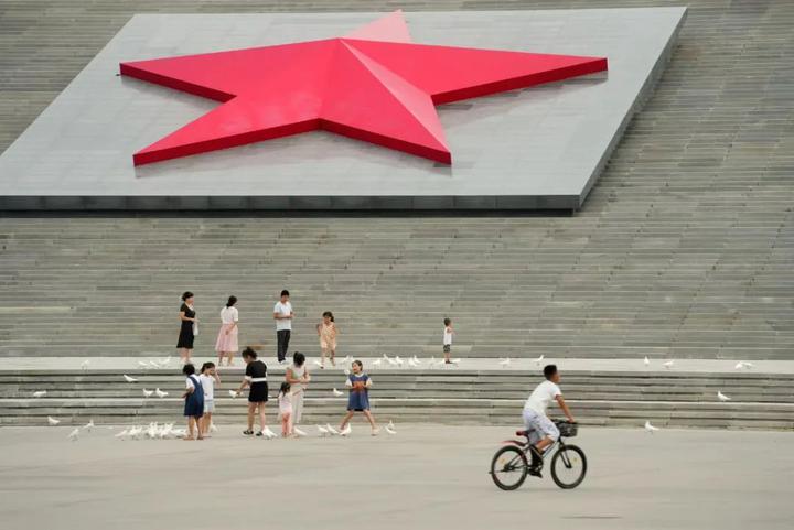 2022年8月15日,陕西省铜川市照金纪念馆广场前旅行的游客。付锐 摄