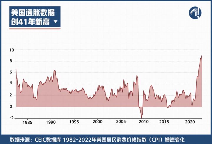 疫情期间,美国不仅以6.5%的经济损失率(剔除宏观经济政策影响之后),位居调查中涉及的各国前列。更直接的表现,就是美国通胀水平创41年新高。