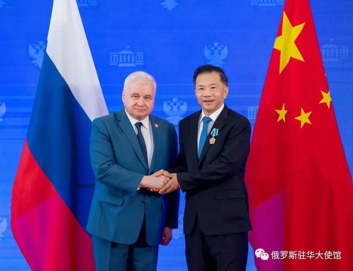 风姐刚刚刷到一条重磅新闻:据俄罗斯驻华大使馆消息,2022年8月26日,俄罗斯驻华大使向中共中央宣传部副部长、中央广播电视总台台长慎海雄颁授友谊勋章。