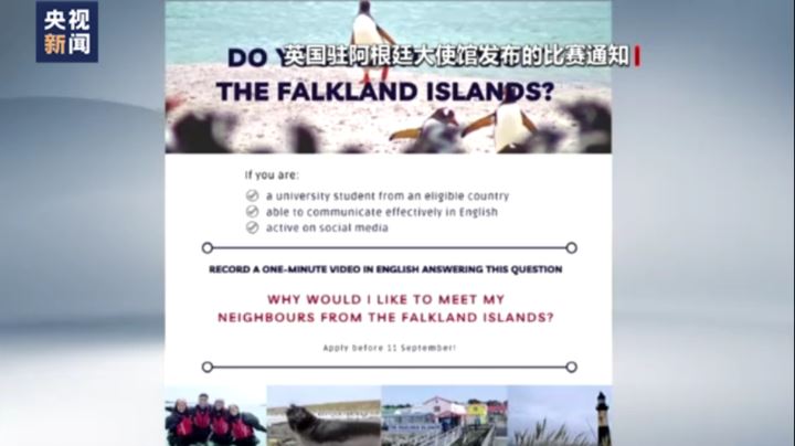 近日,英国驻阿根廷大使馆发起一项面向阿根廷境内大学生的线上短视频比赛,声称获奖者可以赴马岛免费旅行一周。对此,阿根廷外交部发布公告表示严正反对,指出英国这么做的目的是宣扬英对马岛的实际“占领”,要求英国遵守联合国决议,就马岛主权争端展开谈判。那么阿根廷的大学师生对此态度如何?