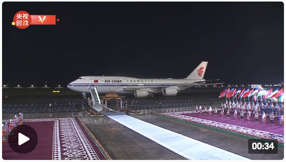 当地时间14日晚,国家主席习近平乘坐专机抵达乌兹别克斯坦撒马尔罕国际机场。现场,身着盛装的人群和由数十面中乌两国国旗组成的旗阵尤为醒目。