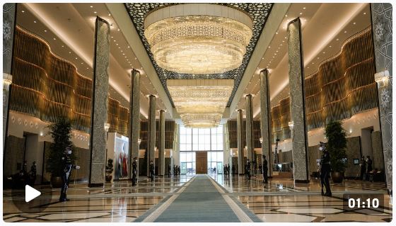 9月15日上午,习近平主席抵达撒马尔罕国际会议中心南门,在米尔济约耶夫总统的陪同下,穿行一层中央大厅,前往北门外广场,出席欢迎仪式。这一段“超长”穿行,见证着中乌两国两千多年的友好交往。时政Vlogger也有幸用脚丈量了两国元首走过的这条“友谊之路”。