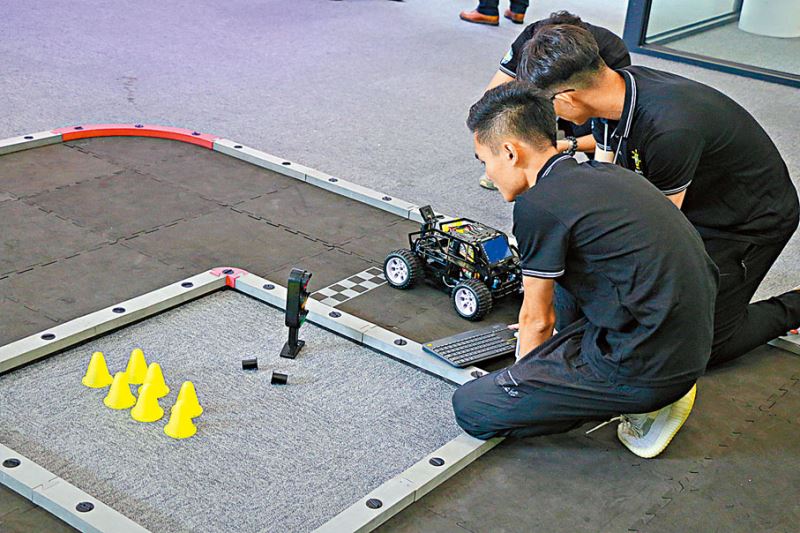 ◆創享社與廣工「粵港澳大灣區大學生創新創業融合服務中心」同樣落戶在「工大創谷」空間內。圖為「工大創谷」兩名學生在做機器人相關實驗。 受訪者供圖廣工與華為共建全國首個「鯤鵬&昇騰開發者創享社」