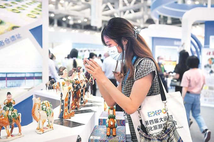 第四届运博会共有六大主题展览——运河城市文旅精品展、“丝路与运河的邂逅”国际展、运河特色旅游产品展、运河非遗展、运河数字文旅产业展、运河美食文化展。立足大运河全域,通过携手省内外大运河沿线城市、文旅企事业单位,运博会不断巩固和扩大着运河“朋友圈”。与往届相比,本届运博会参展城市和企业增多,六大主题展中,省外参展单位与往年相比明显增加,占比达65%。