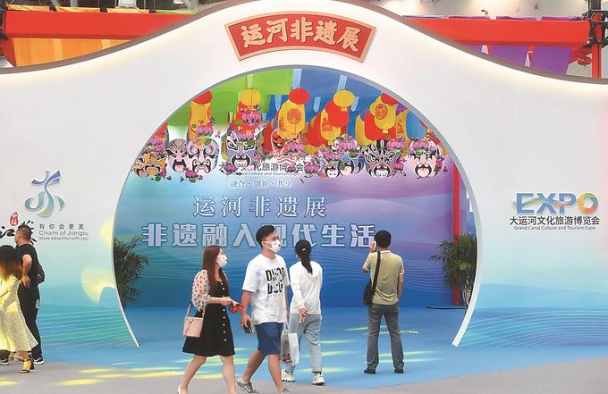 运博会展览现场。千年运河贯南北,清波一脉通古今。9月22日,第四届大运河文化旅游博览会在苏州启幕,灿若星河的文旅展品汇聚一堂,全方位、多角度展现大运河的文化内涵和非凡魅力。在这里,琳琅美物与运河文化相融交织,传统文化与现代科技精妙互动,一幅生生不息的运河最美画卷徐徐展开。