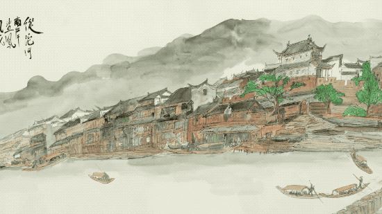 这是一幅我画的凤凰城,是沈从文先生笔下的凤凰城。这幅《烟雨凤凰城》,我画了七八个小时。