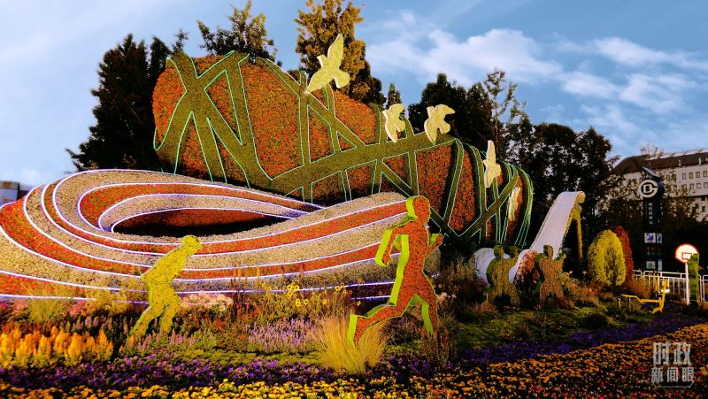 △北京长安街沿线的“创新发展”主题花坛。(总台央视记者魏帮军拍摄)