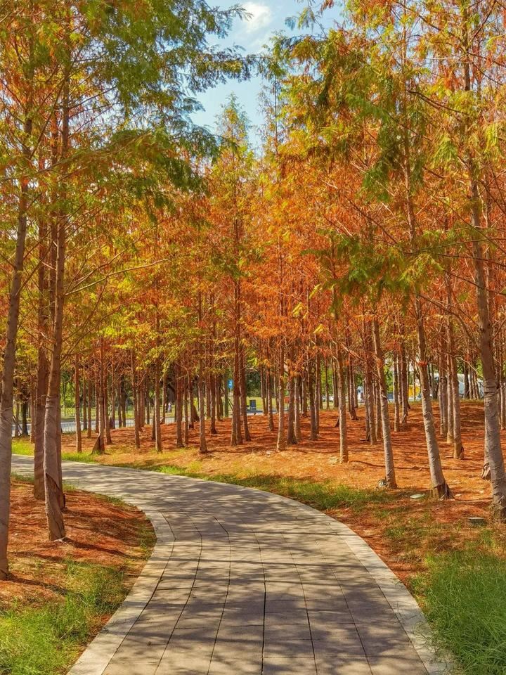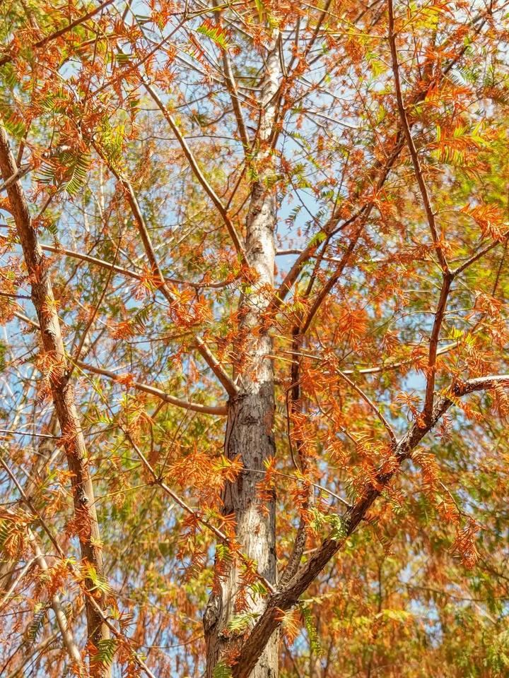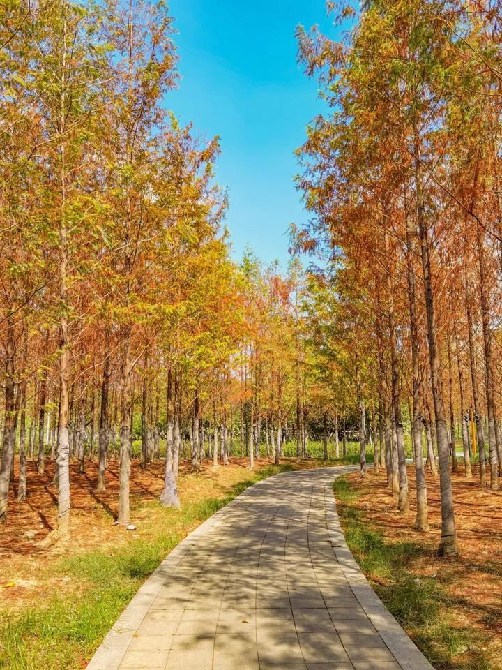 除了三江口湿地公园,在高新区桥头车站旁公园之中,还藏着一片水杉林。