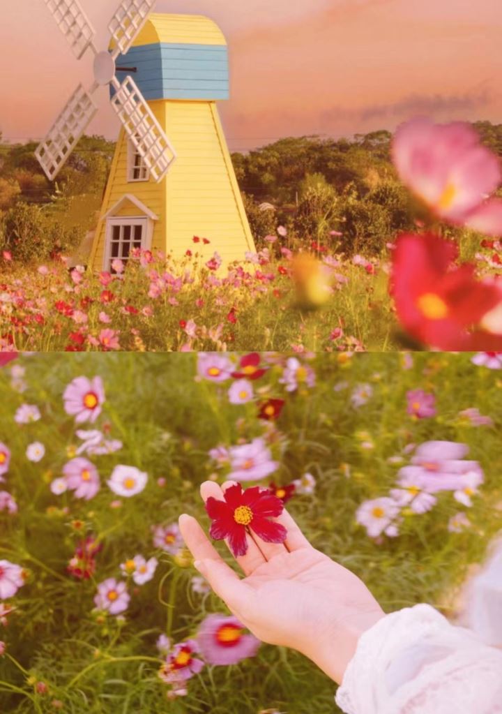 红、白、粉、紫的花朵交织在一起,犹如一支巨型万花筒,让人心情豁然开朗。一头扎进这片花海里,怎么拍怎么美。