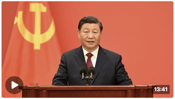 在中共二十大新闻发言人孙业礼作简要介绍后,习近平发表了重要讲话。习近平首先表示,很高兴在这里同各位记者朋友见面。昨天,中国共产党第二十次全国代表大会已经胜利闭幕了。这是一次高举旗帜、凝聚力量、团结奋进的大会。国际社会对中共二十大高度关注。许多国家的政党发来了贺电贺信,其中很多是国家元首、政府首脑、政党和重要组织机构领导人发来的。在此,我谨代表中共中央,致以诚挚谢意。