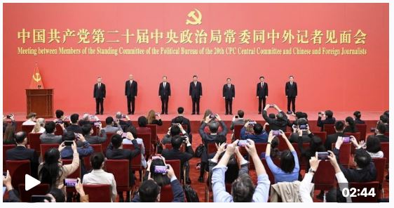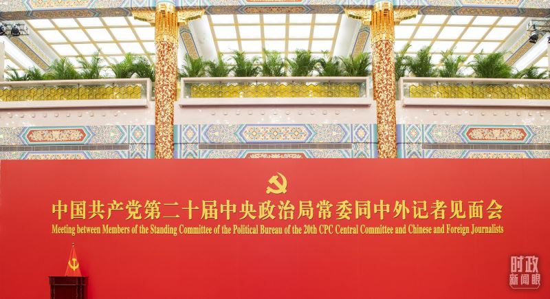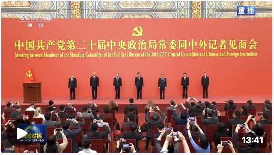 10月23日,刚刚在党的二十届一中全会上当选的新一届中共中央政治局常委,在人民大会堂同采访中共二十大的中外记者亲切见面。