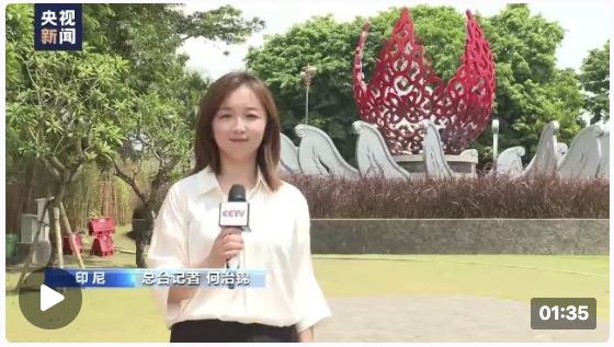 总台记者何治锦:在我背后就是本届二十国集团领导人峰会的主题雕塑。这个雕塑由印尼国旗的红白两个主色组成,设计灵感来自印尼皮影文化以及印尼蜡染图案,红色的树叶外形象征茁壮生长的植物,也体现出本届峰会“共同复苏、强劲复苏”的主题。