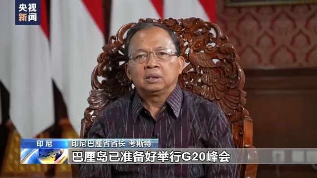 印尼巴厘省省长考斯特:我想借此机会表示,巴厘岛已准备好举行G20峰会。我代表巴厘省政府、巴厘岛人民,欢迎将在巴厘岛出席峰会的国家元首和代表,特别欢迎中国国家主席习近平出席峰会。欢迎来到巴厘岛。