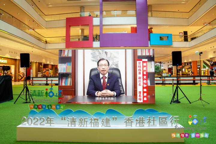 福建省文化和旅游厅副厅长肖长培在活动视频致辞中说,带着党的二十大胜利召开的浓浓喜气,很高兴有福气、有颜值、有文化、有品位、有未来的“清新福建”再次走进香港社区,希望香港各界同胞多来福建走一走、各位乡亲常回家看看,在福建,可以喝闽茶、看土楼、泡温泉、尝闽菜、听南音、品故事,走进清新福建,开启幸运之旅。