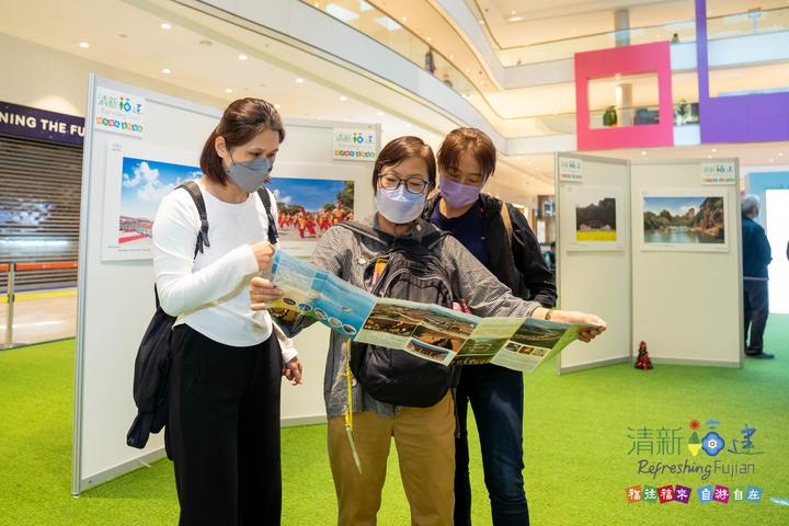 活动现场,内容丰富、精致大气的“清新福建”“福”文化品牌主题图片展,吸引广大香港市民驻足观看,感受“山海画廊、人间福地”的魅力。现场互动氛围热烈,香港民众踊跃参与福建文旅知识问答游戏,并饶有兴趣地翻看现场赠阅的福建文旅导览手册、文旅手绘地图、闽山闽水物华新等宣传材料,感受福建传统文化、旅游魅力。