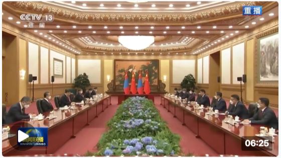 习近平欢迎呼日勒苏赫访华。习近平指出,我们时隔两月如约再次会面,充分体现了中蒙关系的高水平。中蒙互为重要邻国,保持中蒙长期稳定的睦邻友好合作关系,符合两国人民根本利益。中国坚持亲诚惠容理念和与邻为善、以邻为伴周边外交方针,高度重视深化中蒙友好互信和利益融合。双方携手抗疫,守望相助,弘扬了传统友谊。两国各领域交流合作不断走深走实,树立了国与国交往的典范。面对不稳定性不确定性日益上升的国际环境,中方愿同蒙方以构建两国命运共同体为引领,推动中蒙全面战略伙伴关系行稳致远,更好造福两国人民。