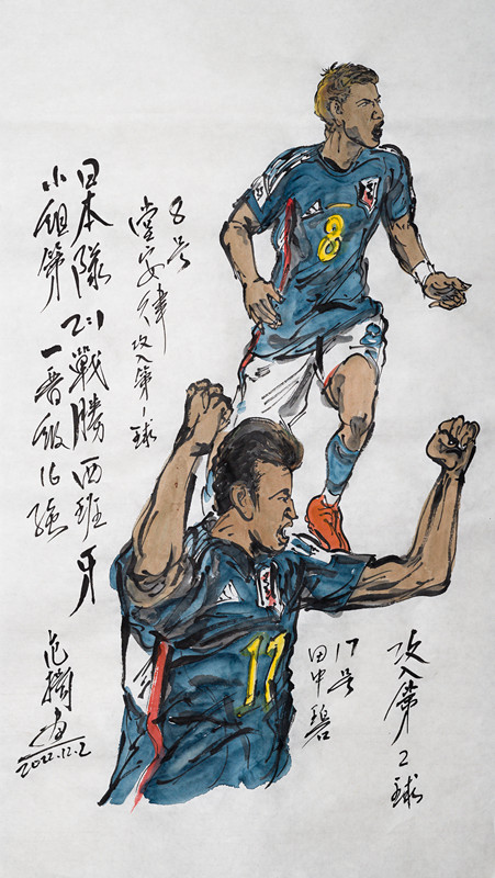 卡塔尔世界杯上,最令人意外的,恐怕是亚洲劲旅。澳大利亚、日本、韩国三家挺进世界杯16强。这让人们感到亚洲足球大有希望!请看著名书画大家范扬先生笔下的精彩瞬间。