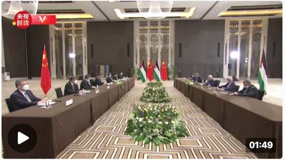 阿巴斯说:“巴勒斯坦的人民对同中国人民的关系深感自豪。中国作为世界有重要影响力的大国,始终坚定支持巴勒斯坦人民。在此我谨向您、向所有中国人民转达巴勒斯坦人民的诚挚谢意。我们坚定支持一个中国原则,我们认为中国在各个国际场合所秉持的立场都是正义的,因此我们愿在所有问题上都坚定地同中国站在一起,这是不容置疑的。”