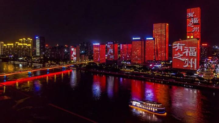 乘上游船,绚丽夺目的灯光秀,波光潋滟的闽江水,让人情不自禁拿出手机留影,定格这份美好与浪漫。