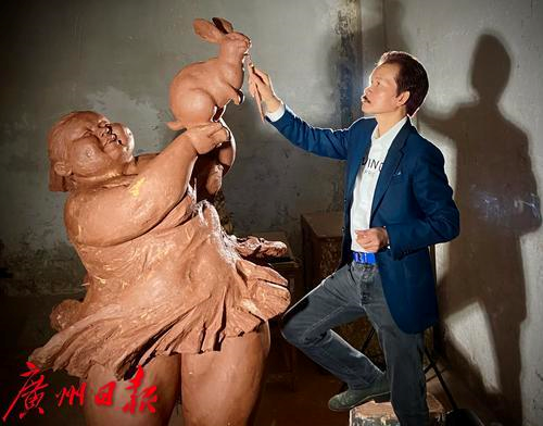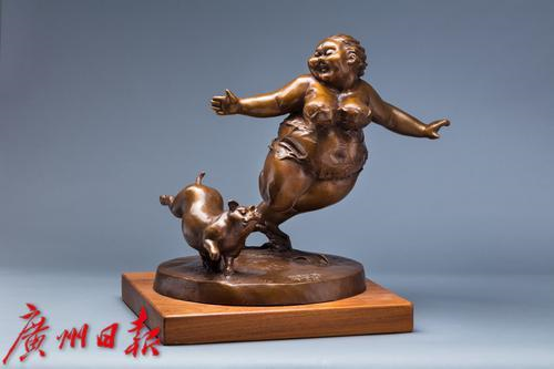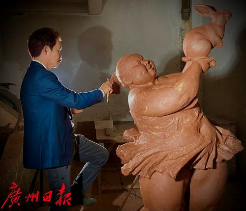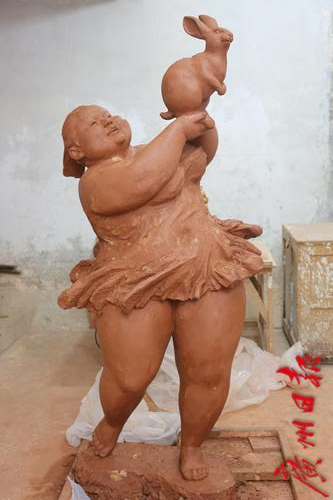 近日,雕塑家许鸿飞又为新年生肖创作了一座“肥女”与“肥兔”雕塑