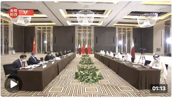 习近平首先预祝卡塔尔世界杯取得圆满成功,指出,卡方成功主办世界杯,展示了卡塔尔的能力,为当今充满不确定性的世界注入了新鲜、积极能量。