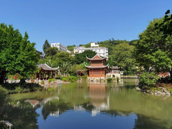 背靠乌山风景区的黎明湖公园,被周边的居民誉为是一颗小巧亮眼的园林“明珠”,也被称为“福州小西湖”。