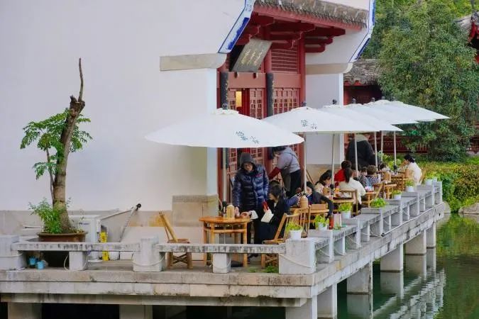 黎明湖公园内还有一处“网红”打卡点——悠茶小驿,其地处市中心,坐落于古色古香的黎明湖公园北面入口与“避暑纳凉胜地”乌山防空洞南出口相邻处——流香楼,茶馆室内“书香四溢”,图书占满整面墙,可免费翻阅。品茶之余可欣赏湖光山色、享受习习凉风。