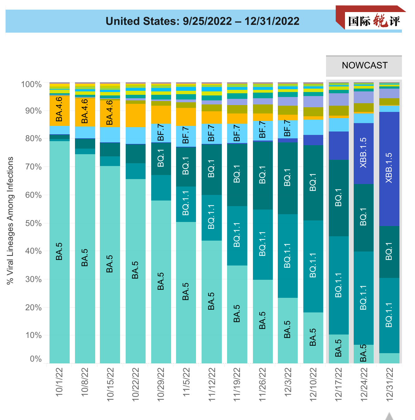 美国疾控中心(CDC)监测数据显示,美国流行的毒株不断更新换代。去年7月至10月,BA.5成为美国主要流行毒株,到11月份让位于BQ1、BQ1.1,到12月XBB.1.5毒株流行,新感染病例占比升至41%。CDC还预计,在美国东北部,XBB.1.5导致了约75%的新病例。由于具有极高的“免疫逃逸”能力,XBB.1.5已经成为美国头号流行毒株。