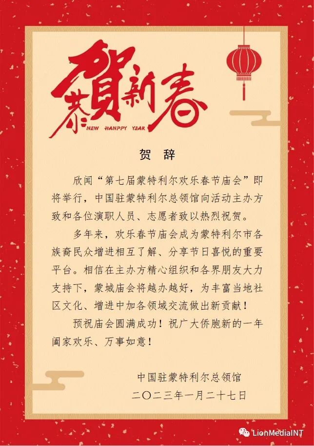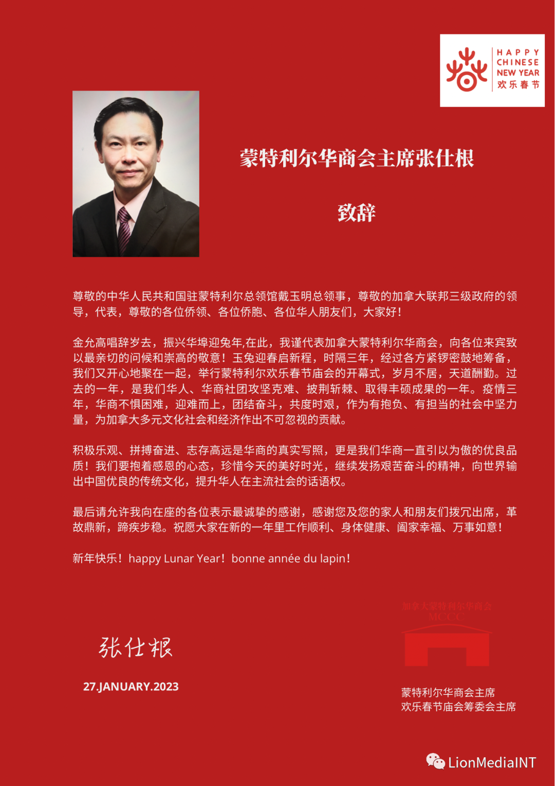 After three years,the long-awaited7th Montreal Happy Chinese New Year Temple Fair will be held on January28,2023at Sun Yat-sen Park and Cultural Palace in Chinatown!The theme of this year's Spring Festival temple fair is to revitalize Chinatown to welcome the Year of the Rabbit2023.First,at1:30p.m.on January28,the opening ceremony of the7th Montreal Happy Chinese New Year Temple Fair will be held at Sun Yat-sen Park in Chinatown,hosted by the Montreal Chinese Chamber of Commerce,2023Montreal Joy Chairman Zhang Shigen of the Preparatory Committee of the Spring Festival Temple Fair delivered an opening speech,and Consul General Dai Yuming of the Chinese Consulate General in Montreal delivered a speech.The event release ceremony of the7th Happy Spring Festival Cloud Gala will be held.There will be Consul General Dai Yuming of the Chinese Consulate General in Montreal and Canadian government officials at three levels There will be a ribbon-cutting ceremony at the scene,the gongs and drums are loud,the drums are singing together,the green lion dance is picked,the guests are flashing,and the excitement is extraordinary!Let the taste of Chinese New Year float to the world!Visiting the temple fair is a unique traditional folk cultural activity in China that combines eating,drinking,and entertainment.In the Cultural Palace,you can not only enjoy the exhibition of calligraphy and painting works,but also have on-site exchanges with calligraphers and painters from Montreal.There are not only paper-cutting,lanterns and other traditional In the cultural section,there are coffee,hot tea,and snacks waiting for you to enjoy and taste.
