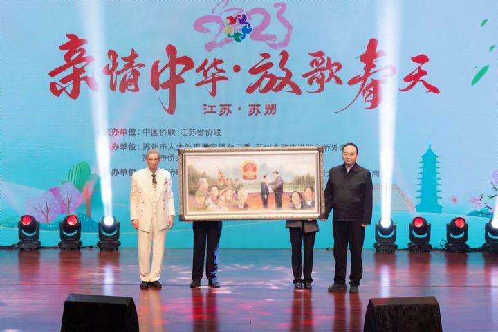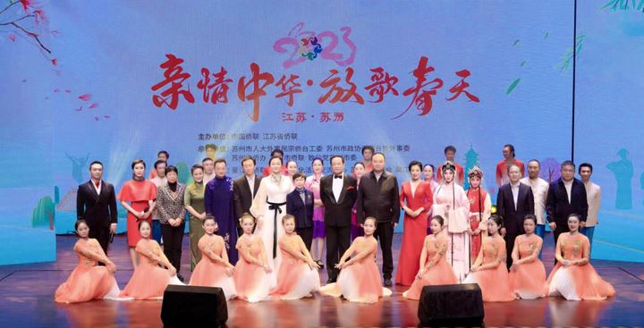 为深入宣传贯彻党的二十大精神,全面落实两会部署,坚定文化自信,讲好中国故事,为建设中国式现代化凝聚侨界力量,3月23日下午,2023“亲情中华·放歌春天”文艺演出在苏州湾大剧院戏剧厅举办。本次活动由中国侨联、江苏省侨联主办,苏州市侨联、市人大外事民宗台侨工委、市政协港澳台侨外事委、市侨办、致公党苏州市委承办,吴江区侨联、苏州文化活动交流中心、苏州市侨商会、吴江区侨商会协办。中国侨联文化交流部部长刘奇,江苏省侨联副主席艾卉,苏州市政协副主席姚林荣,苏州籍华侨华人、归侨侨眷及各界群众代表400余人在现场观看演出,同时通过“华人头条”“国际日报”“君到苏州”等海内外媒体向全球华侨华人进行演出直播。