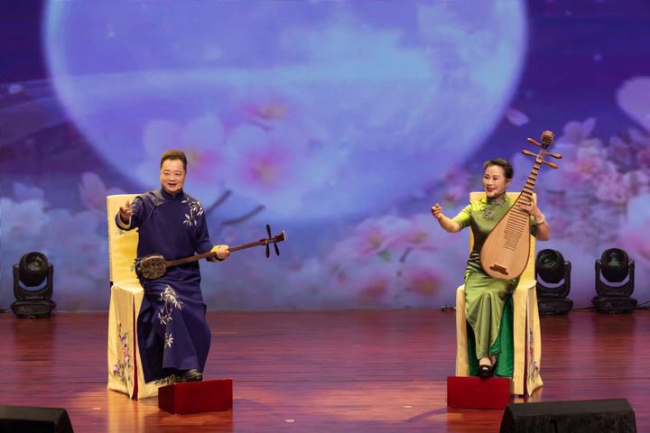 国家一级演员、中国曲艺牡丹奖获得者袁小良、王瑾表演评弹《月圆·人美·花好》