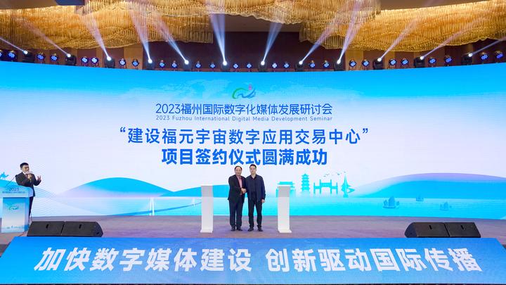 此外,作为本次研讨会的重要成果之一,福州广播电视台正式与福建星炫之境网络科技有限公司签约。未来,双方将建设福元宇宙数字应用交易中心。